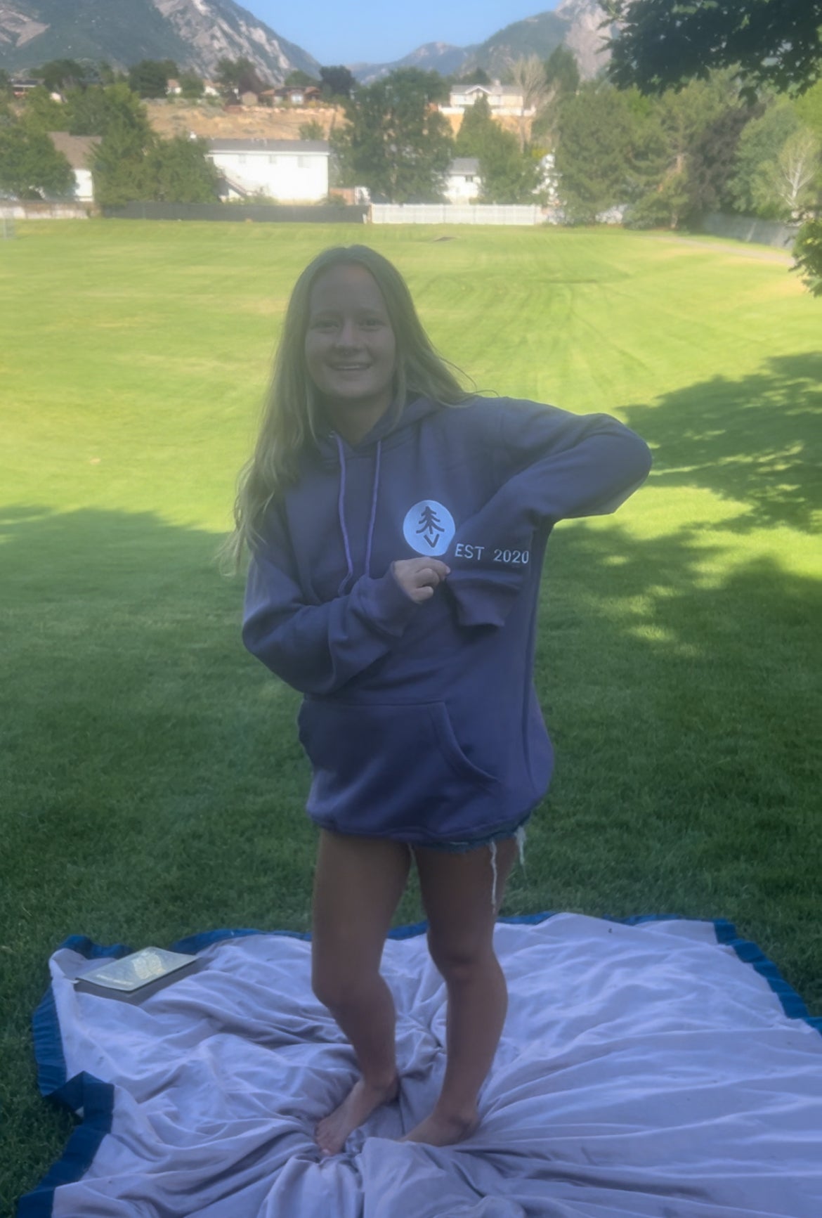 Heavyweight snowboarding hoodie with 'treevy logo' on the front and newly 'Est 2020' on the left wrist. light purple color. Perfect for hoodie weather. Logo and Est 2020 are Embrodiered.