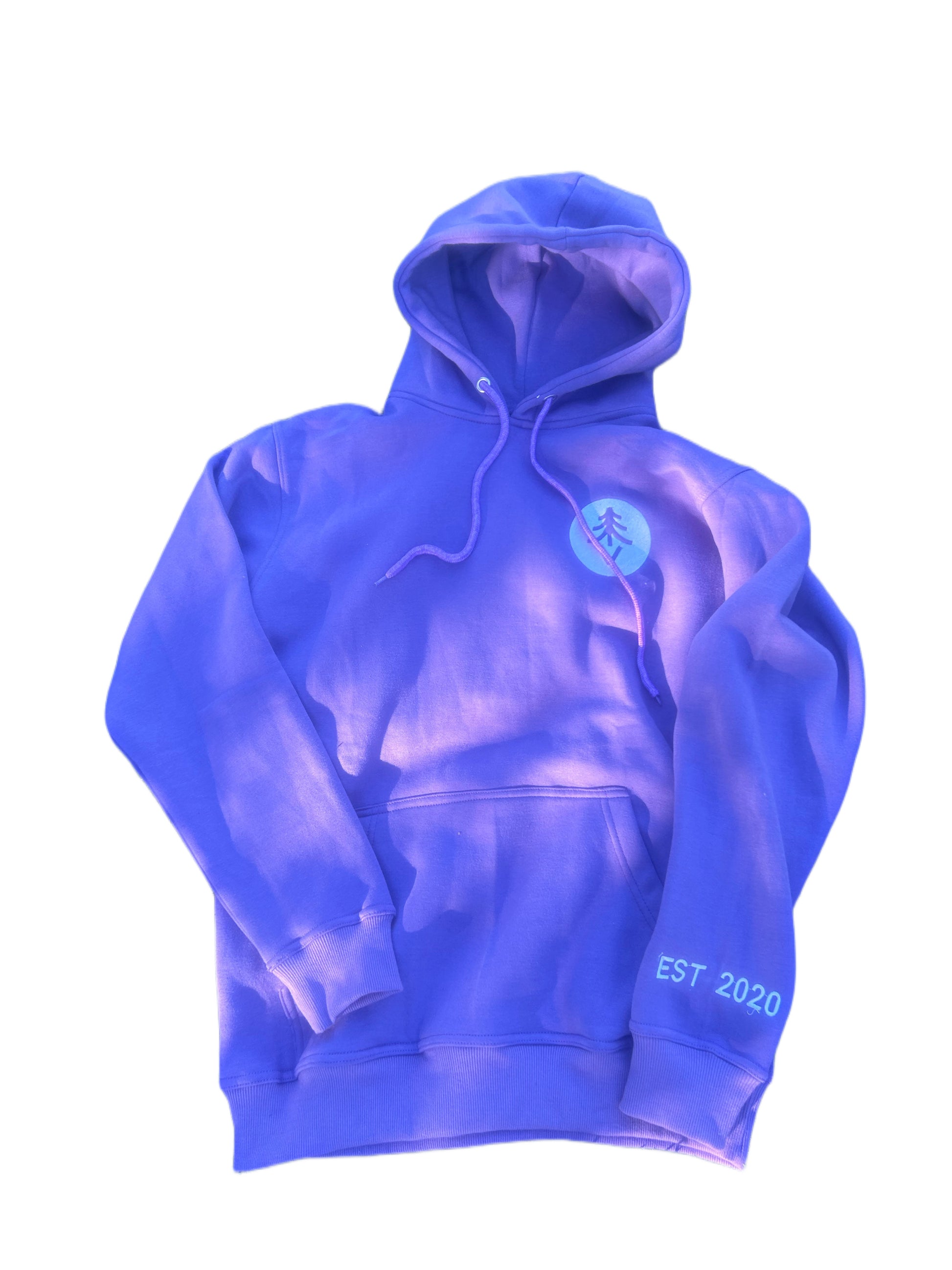 The Treevy est 2020 Hoodie is made of cotton and comes in the color purple . The wrist of the hoodie features est 2020, and the front features our Treevy logo, our logo is loved by so many.