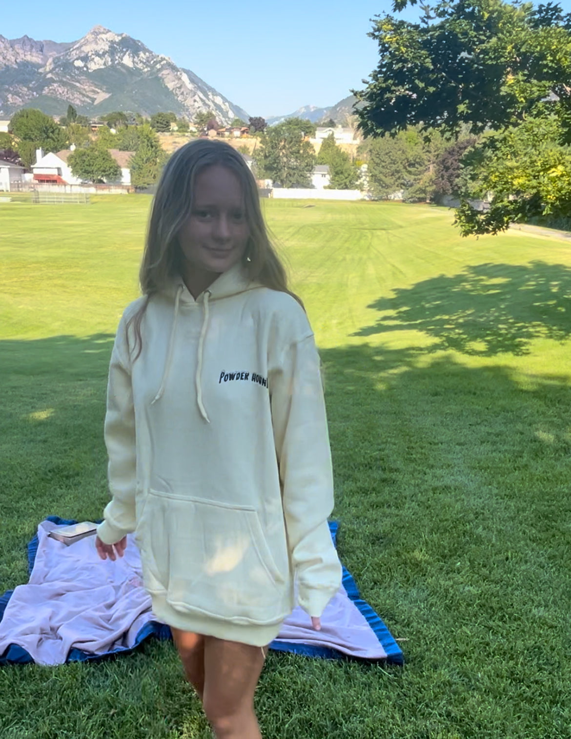 The Cream color is perfect for fall, winter or summer nights and the Powder Hound design makes our hoodie fun and spunky with our powder hound on the back wearing snow goggle So grab one today and stay cozy all winter long! incredibly soft inside and out.